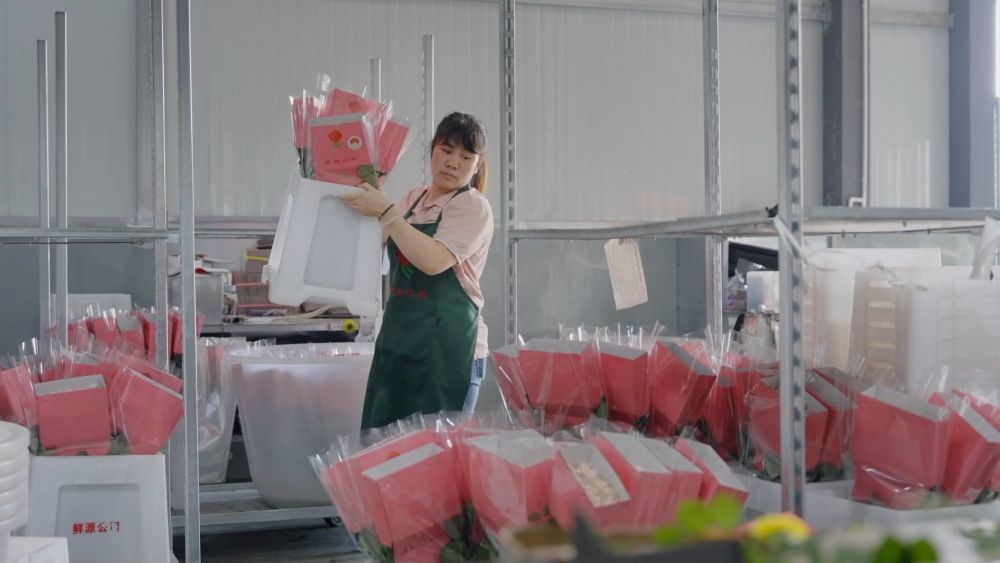 在晉寧昆陽張良花卉專業合作社的包裝車間內,工人們忙著分揀、包裝和打包,現場一派繁忙。云南晉寧昆陽張良花卉專業合作社負責人張良表示,最近白色、紅色和粉色的玫瑰鮮切花特別受歡迎,每天出貨量20多萬枝。“我們的花主要發往上海、重慶、廣州等城市。目前整個銷售量情況比較良好,訂單還在持續增長。”