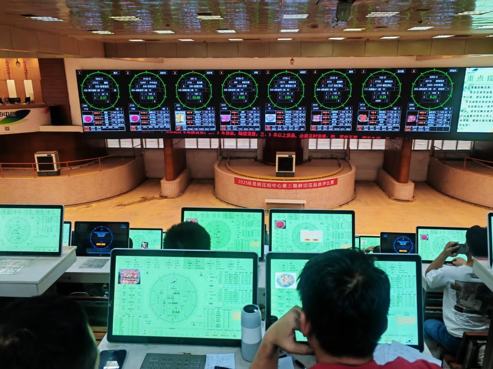 線下市場熱鬧非凡,線上拍賣平臺高效運行,數字化手段正在為花卉流通提供有力支撐。云南愛必達園藝科技有限公司副總經理徐馨介紹,中心線上的日均交易量大約每天在40萬枝鮮切花,參與交易的供貨商每天大約200戶,線上拍賣的購買商大約180戶。“為保障交易效率和鮮花品質,我們在拍賣前做好物流接收、質檢、定級、數據錄入等各項準備,拍賣結束后,及時完成配貨、打包和發貨,確保每一枝鮮切花以良好的狀態送達客戶手中。”