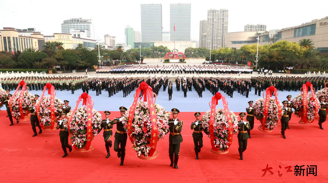 鮮花獻英烈,哀思祭忠魂。南昌八一廣場松柏蒼翠、莊嚴肅穆,八一南昌起義紀念塔巍然聳立,來自社會各界人士代表整齊列隊、手持鮮花,共同緬懷英烈。
