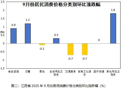 9月份江西居民消費(fèi)價格同比上漲0.1% 環(huán)比上漲0.2%