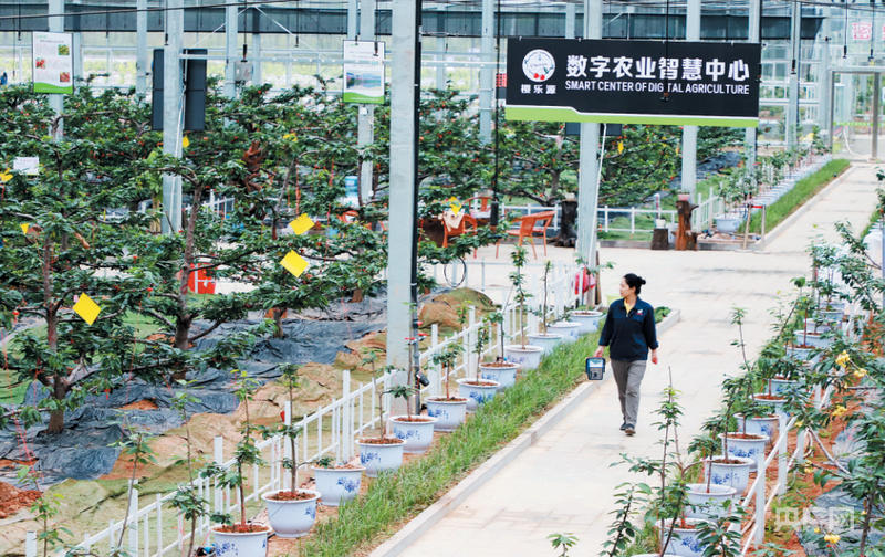 清晨,大地尚在蘇醒,霧氣還沒完全散去,果園里已是一片忙碌。水汽氤氳的大棚里,一株株櫻桃樹枝繁葉茂,整齊排列。林志剛穿梭其間,手指輕點手機屏幕,滴灌系統隨即啟動,細密的水霧精準地滋養著每一寸土壤。