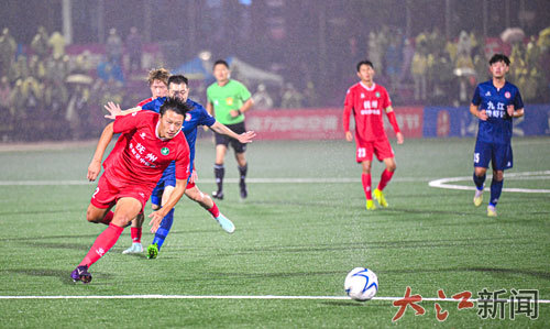 下半場易邊再戰,雨勢未減,雙方對陣容均做出調整。撫州隊為扭轉頹勢加強進攻,曹靖康主罰的任意球擊中門框,與扳平比分擦肩而過。此后,雙方攻防節奏加快,互有攻守。