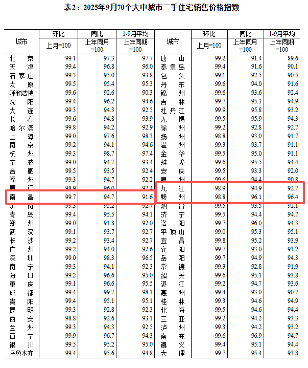 2025年9月份商品住宅銷售價格變動情況統計數據