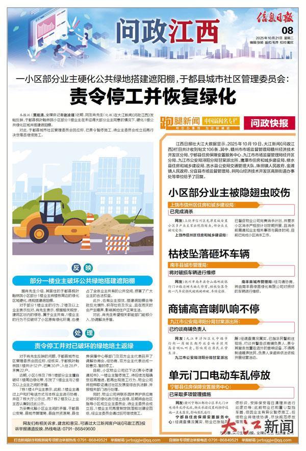 網友們有相關訴求、建言和意見,可通過大江新聞客戶端《問政江西》投訴舉報通道反映,熱線電話:0791-86849600